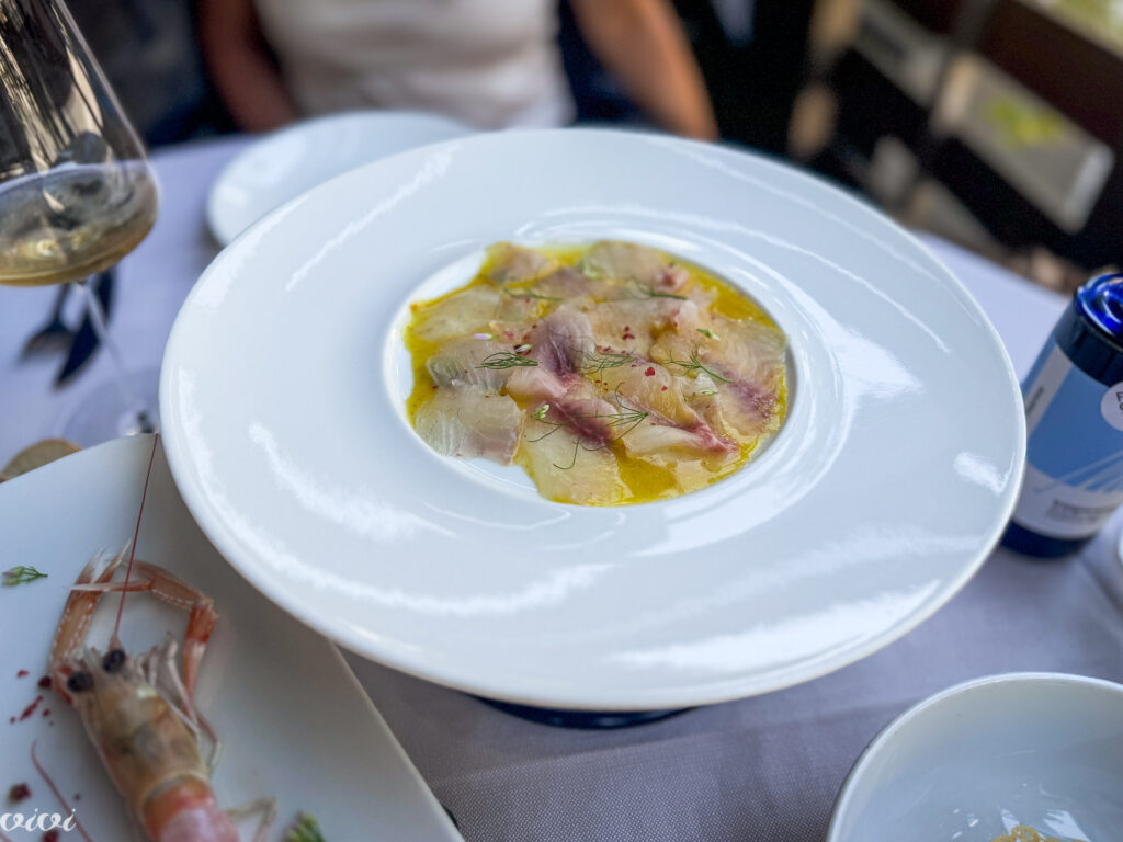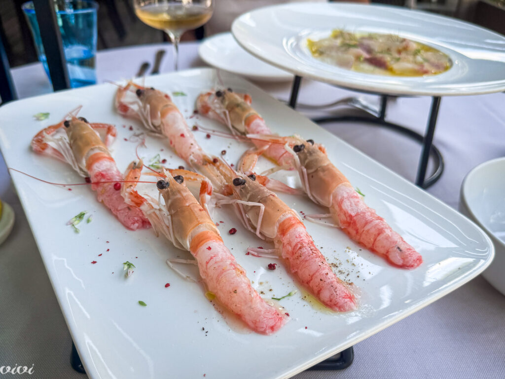 Raw Adriatic shrimp have their tails peeled off, because they went into the fish stock, so it is “not allowed” to tear them off, but to suck them, from the head, where there is still so much juice, to the tail fin, where there is no sweetness left. Their rawness is “softened” by just a few grains of red pepper and drops of new olive oil.