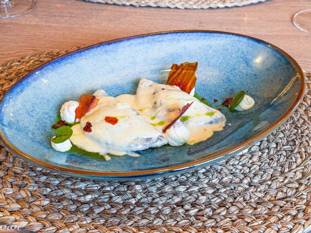 Beef prime rib and three types of onions: onion cream, onion sauce and roasted shallots. Served with homemade curd cheese štrukelj.
