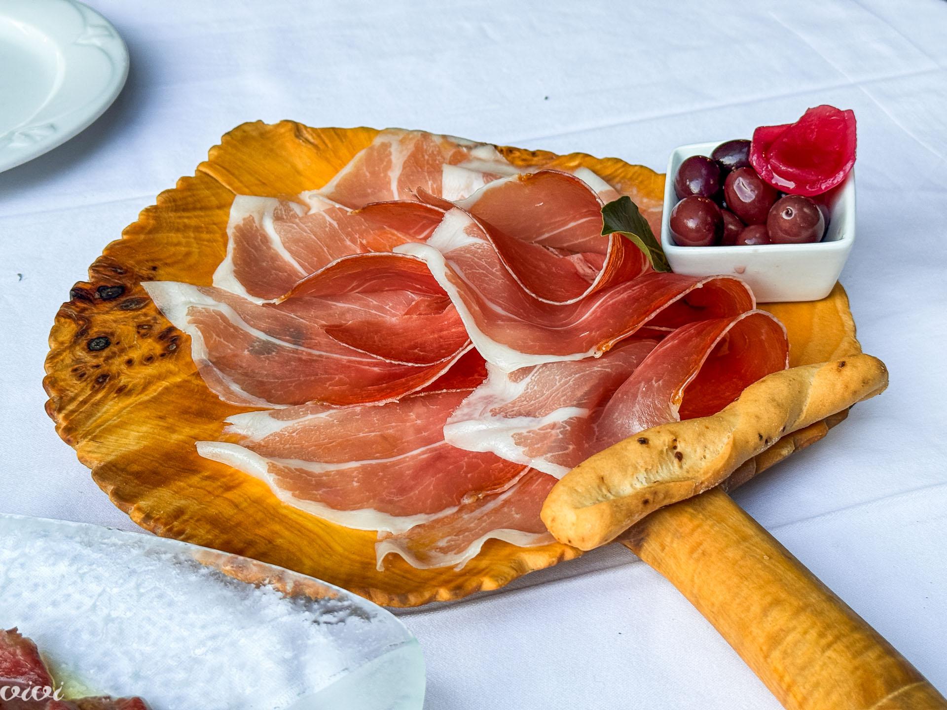 Karst prosciutto. Of course, you can’t do without it in the Karst, but here it’s also from a neighbor – the largest Slovenian prosciutto factory, Karst, Šepulje. The slices are large and thin, the color is ruby ​​red, the smell is seductive, the salty-sweet taste melts on the tongue. All you need to add is black olives and a slice of pickled red onion.