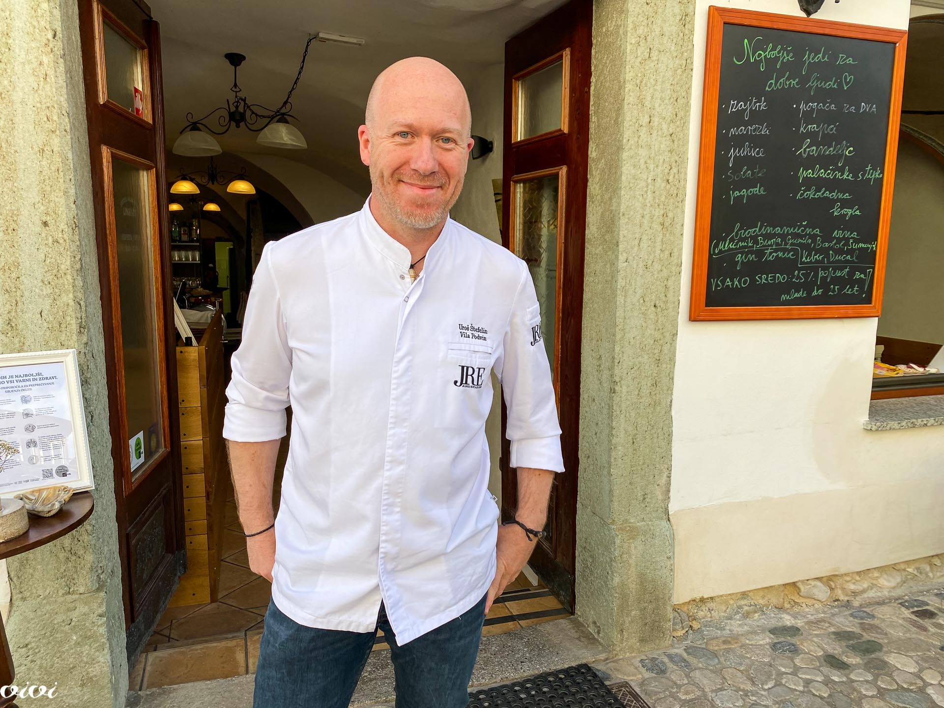 A top notch cuisine by chef Uroš Štefelin, while in the meantime you can pop across the square to the Museum of Apiculture and the Municipal Museum, see the latest exhibition at the Šivec House Gallery, go up the wooden staircase to the Magušar pottery studio, or have a chat with cats and friends!