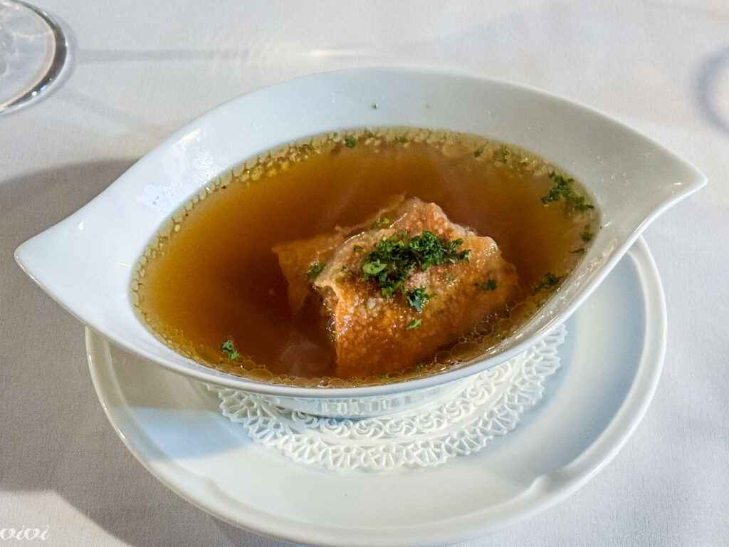 Beef soup with meat strudel.