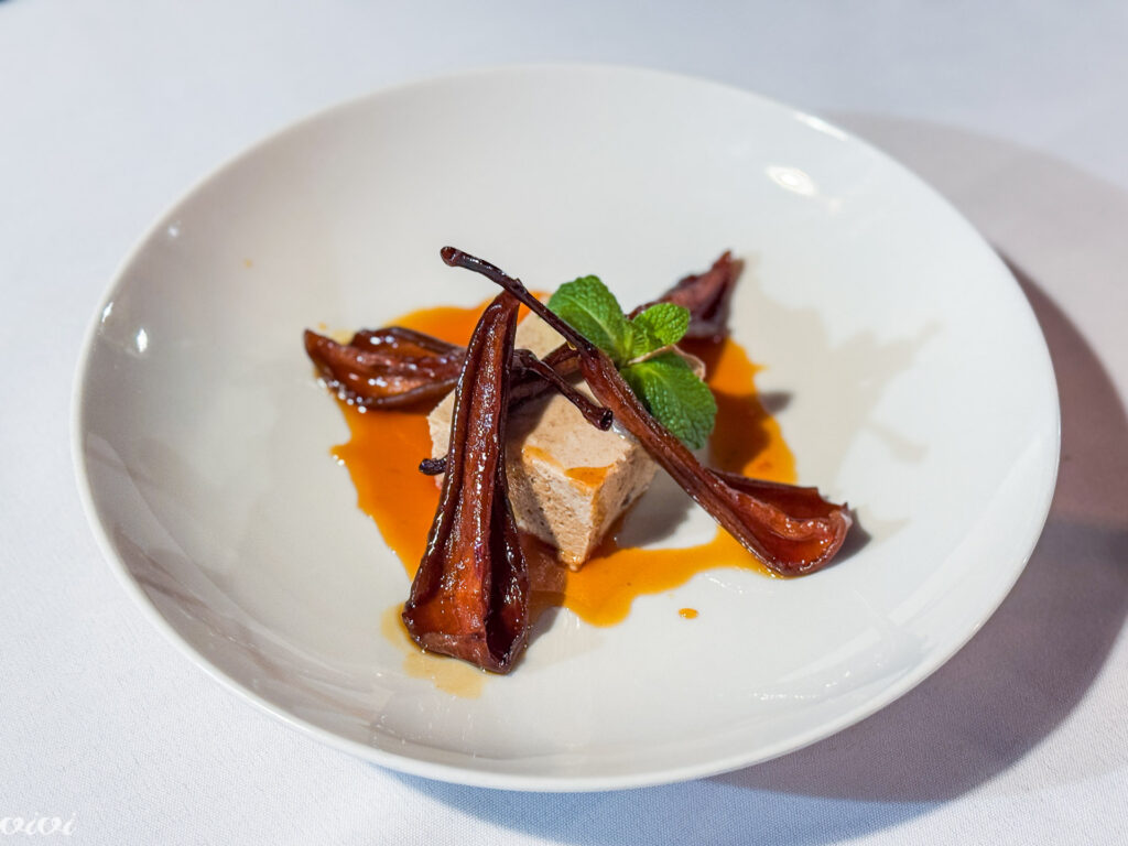Chestnut panna cotta, smoke-dried pears from the drying plant in Gradež, caramel sauce.