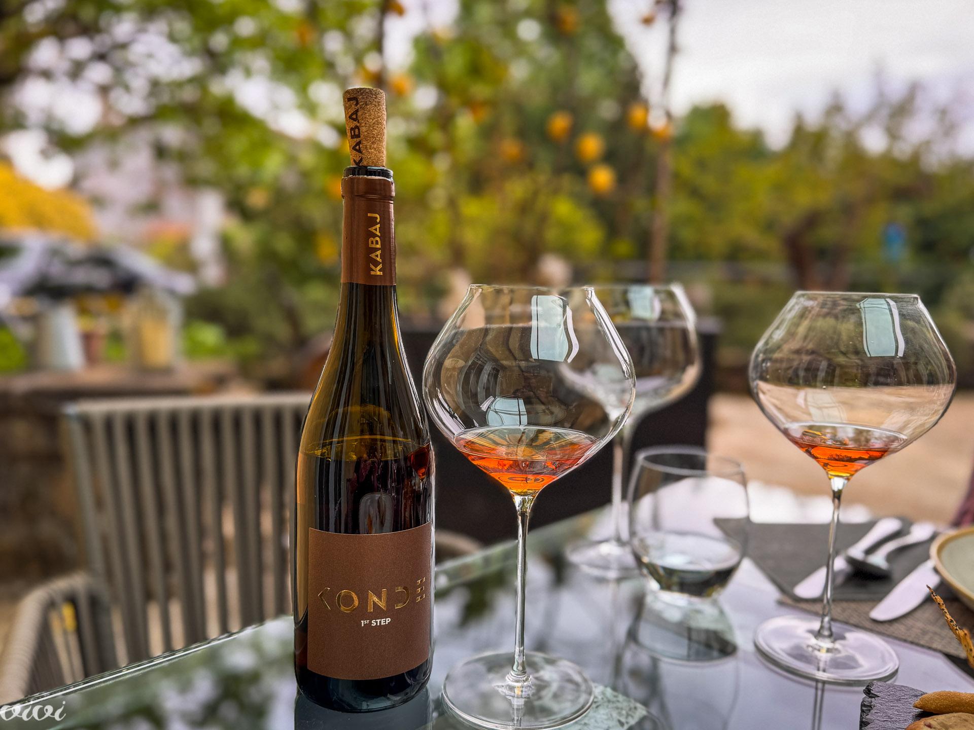 Ob ”novi” foie gras terini je novo tudi vino, čeprav je ”staro”. Konde, letnik 2009, povsem suh, pri gosjih jetrih, ki ”hočejo” sladko spremljavo, njihovo maslenost in rahlo sladkost pokrije suvereno z mineralnostjo, poudarjeno še z neobičajnim načinom trojne pridelave. Prva je bila gruzijska, polletna maceracija v glinenih kvevrih. Potem je sledila francoska, ko so vino pretočili in dali z drožmi, na pol, v barike, kot sur lie metoda v Franciji, ki naredi tanko membrano, da zaščiti vino pred oksidacijo (mikro oksidacija). Ker pa Jeanu Morelu to ni bilo dovolj, je po špansko (metoda jerez za rdeča vina) ležanje na drožeh podaljšal kar na 13 le. Vino je cuvee rebule, malvazije, belega pinota, tokaja in sauvignona. ”Nadgradnja našega vina v amforah.” Barva je jantarna, vonj je konjakov, a vino ni težko (nizek alkohol). Za foie gras!