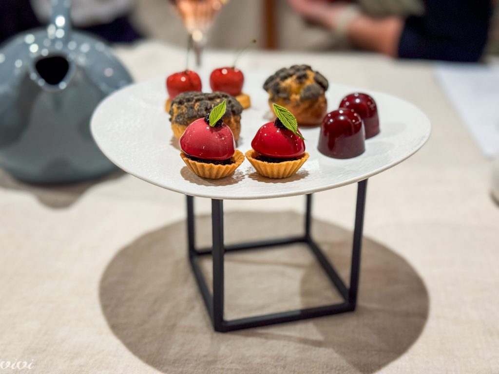 Renato Rac: češnja & hibiskus (mousse iz češnje in hibiskusa na mandljevem piškotu) in črni sezam & zeleni čaj (princeska ali choux polnjen z vanilijevo kremo z matcha čajem, po vrhu črni sezam). In posladkano občinstvo je srečno zaploskalo.