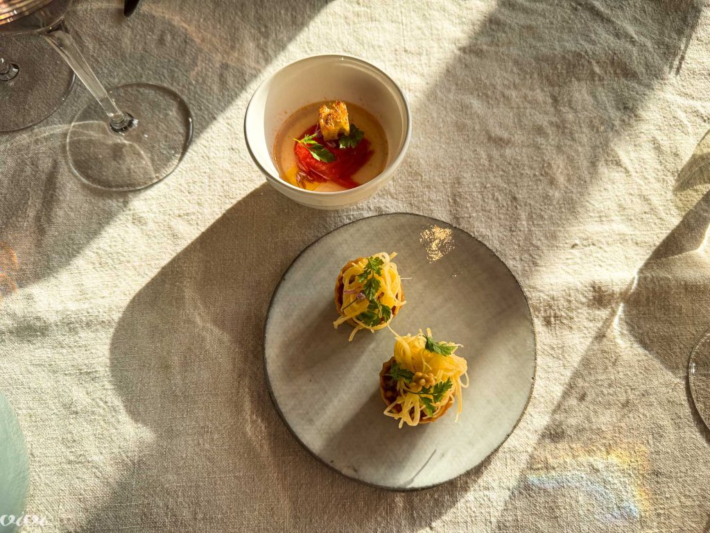 Jurij Daolio: paradižnikova solata, spodaj kot strjenka, na njej sveži paradižnik, vse skupaj v paradižnikovi bistri esenci; in starana govedina, z luštrekom in gorčico, v hrustljavem naprstniku. V enem grižljaju, ki zdraži vsa čutila.