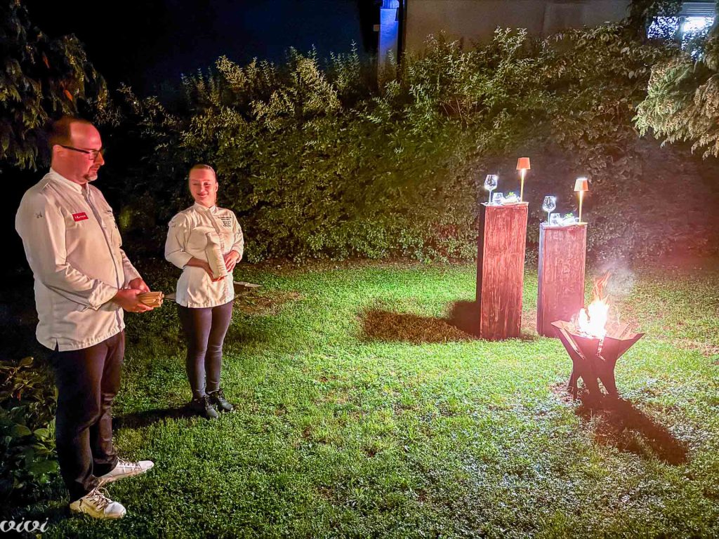 Za doživetje ni več dovolj le dobro kuhati. Da za mizo (v dvoje) ”preživiš” več ur in da zmoreš toliko hodov, ni dovolj le dobro jesti in veliko piti, temveč se je za doživetje potrebno – igrati. Sprejem je v kuhinji, pozdravni grižljaji so kviz in šola okusov, dolgi meni je kratkočasno razdeljen v dva dela, vmes je nočni izlet na vrt in gretje ob tabornem ognju, drugi del se začne spet s pozdravi in konec je spet v kuhinji. Ne bo ti dolgčas.