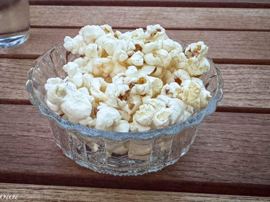 Za uvodno hrustanje ob aperitivu na promenadi Petkovškovega nabrežja, kokice, zapeljivo zabeljene s slanino. Tapasi spremljajo vino, tabarsi pa so bolj ambiciozni, zato vino spremlja njih.