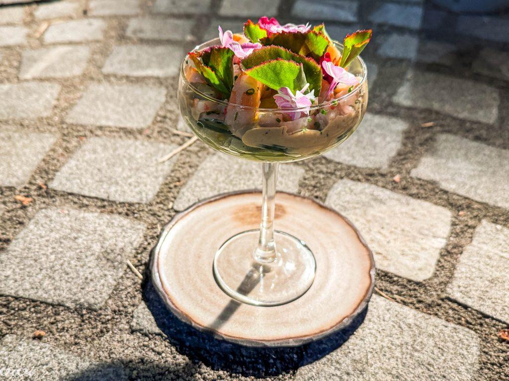 ”Naš rakov koktajl.” Pozabljena klasika je bila v prejšnjem stoletju zvezda hladnih predjedi, ker je združila nezdravo – majonezo in kečap. V Pintarjevem baru pa cveti od zdravja, z avokadom, kolerabo, kumarami, kozicami in rožicami, povezana z morsko majonezo iz bisque omake, pridobljene iz ”ostankov” rakcev.