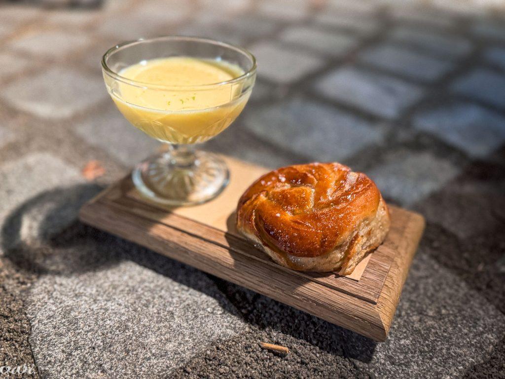 Ker zelenjavni sorbet dobro počisti in je po večerji še lep sprehod od Roga do Tromostovja, Pintar na koncu postreže še zajtrk … Vinskega šodoja se sicer ne da zaviti, vsaj pol sladke in karamelizirane kardamomove štručke pa zagotovo.