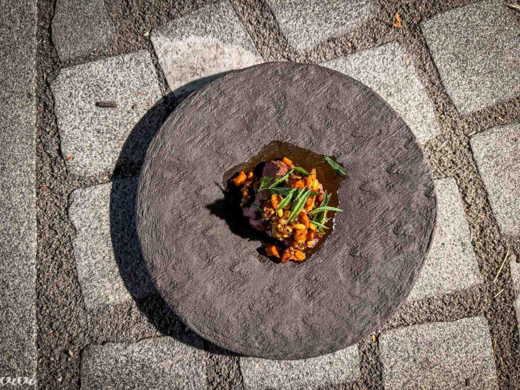 Žrebičkova terina, foie gras in medena gorčica (od Luke Koširja). Takšno share-deljenje na sredini mize, ko dobiš naenkrat preveč jedi in ob njih popiješ preveč vina, te lahko zavede, da se posameznim okusom, jedem in (chefovim) idejam ne posvetiš dovolj. Žrebičkova terina pa zahteva koncentracijo (ker je prav takšen tudi njen grobi okus) in spoštovanje (ker je vzorčni primer veličine francoske meščanske kuhinje, iz katere je zrasla haute cuisine; iz nje pa mišelinke). Ker so takšne preprosto odlične terine zvezde ”vsakega” francoskega bistroja, nas res veseli, ker spet postajajo tudi pri nas izziv za chefe!