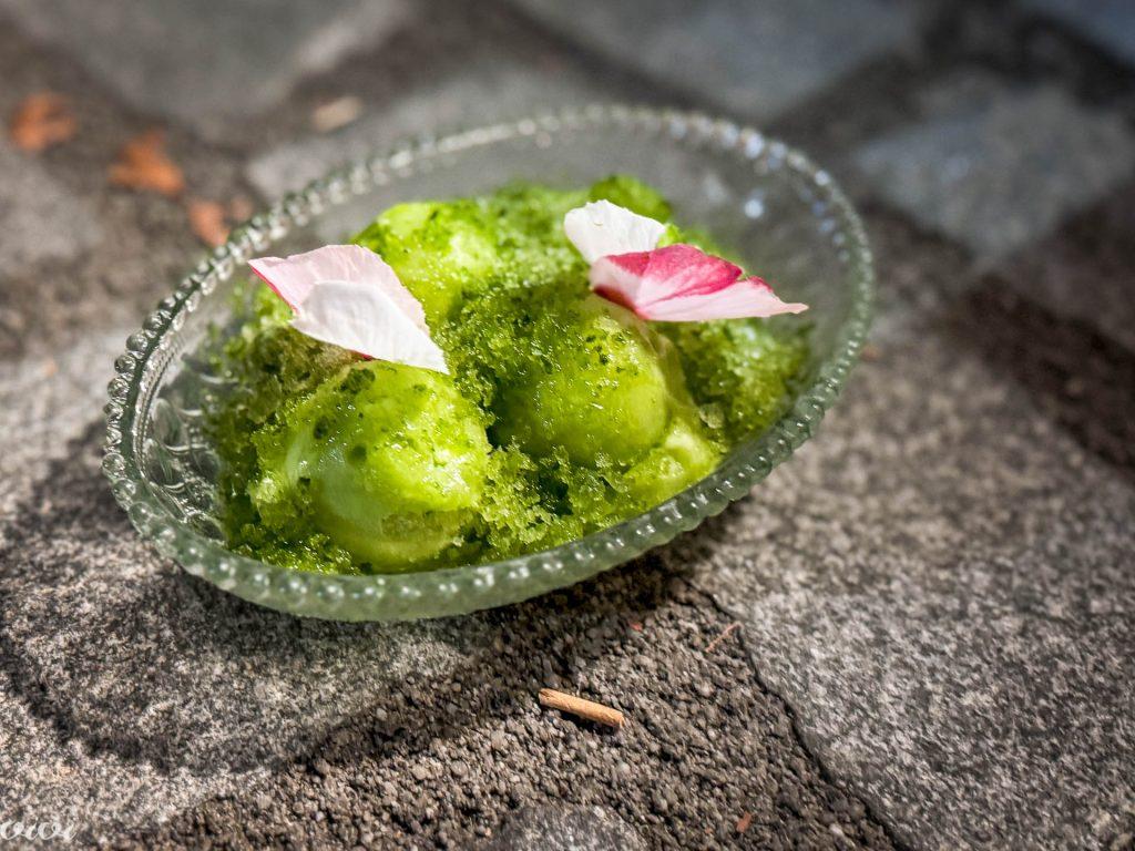 Ker na takšen tapas-share način zmešaš toliko jedi in okusov, da se nimaš časa odpočiti, je ohladitve sicer preveč, a zna počistiti. Nič sladkega, kremastega in na slamico, prosim. Torej, kumarični sorbet in granita zelene!