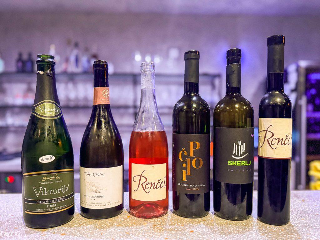 Aperitiv: penina Viktorija, Slavček. Goveji tatar: Weissburgunder 2021, Tauss. Raža, gyoza, melancan: Malvazija 2015, Polič. Košuta: Teran 2021, Škerlj. Sladica: Cherry 2003, passito, Renčel.